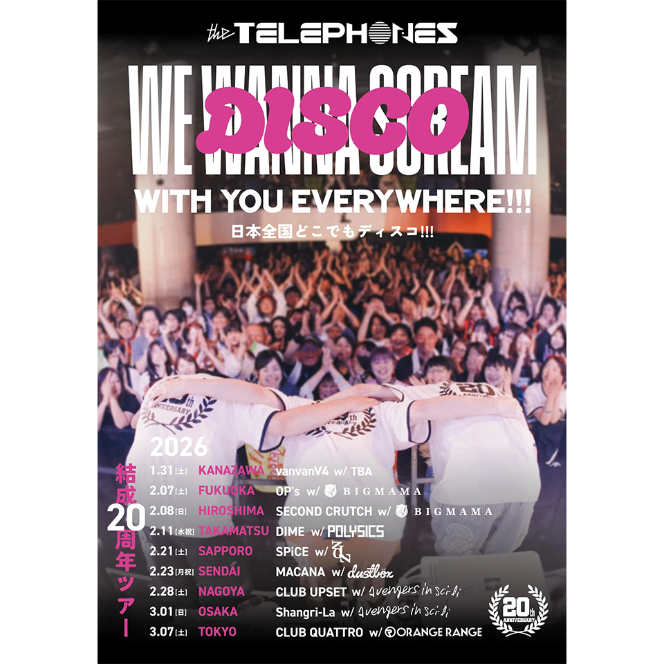 本日、the telephones「Disco Punk Night!!! vol.7 ~TOKYO Dance Night~」のライブ中に、2026年結成20周年ツアーの開催が発表されました!
