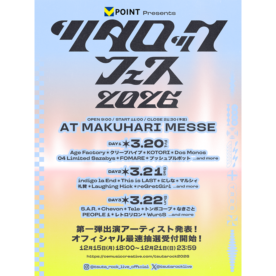 本日、『Vポイント presents ツタロックフェス2026』の第一弾出演アーティストが発表になりました!