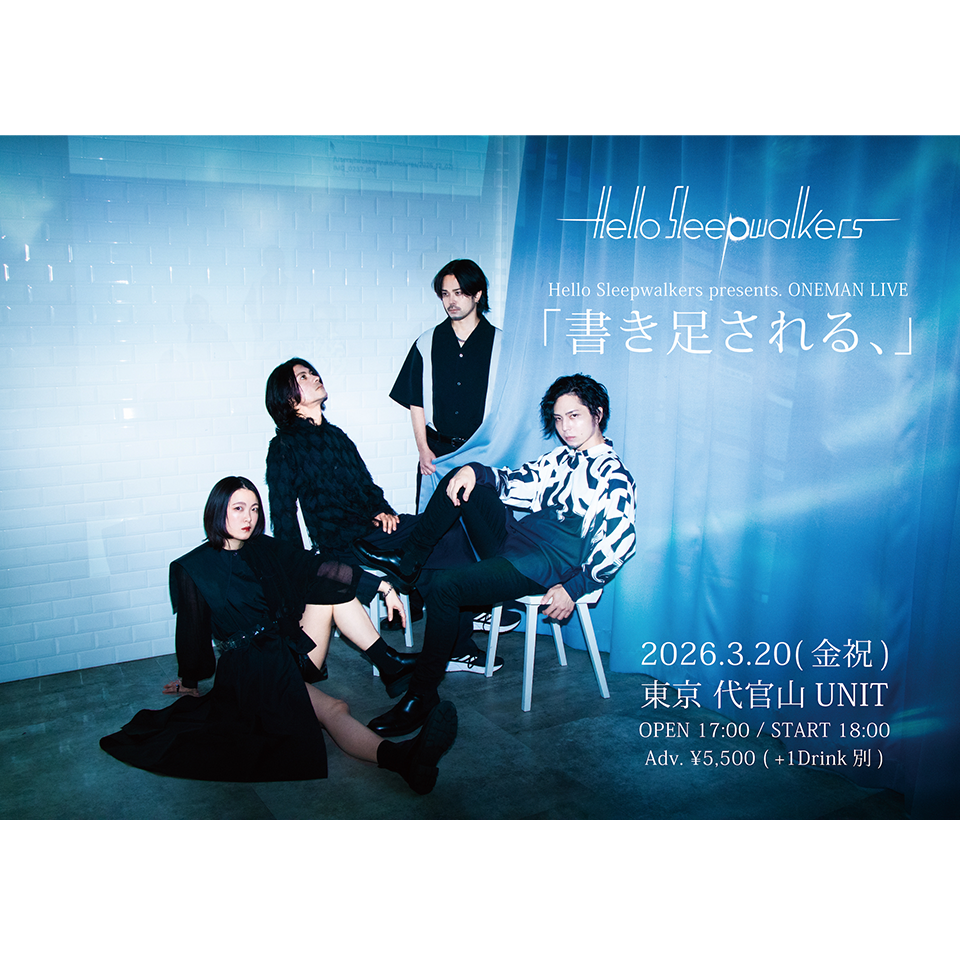 2026年3月20日(金祝)に、Hello Sleepwalkersのワンマン公演「書き足される、」が代官山UNITにて開催決定!