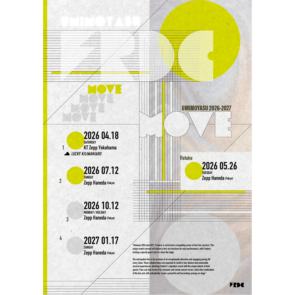 フレデリックが本日、2026年から2027年に関東にて3ヶ月おきに行う自主企画「UMIMOYASU 2026-2027 MOVE」の<番外編>の開催を発表!